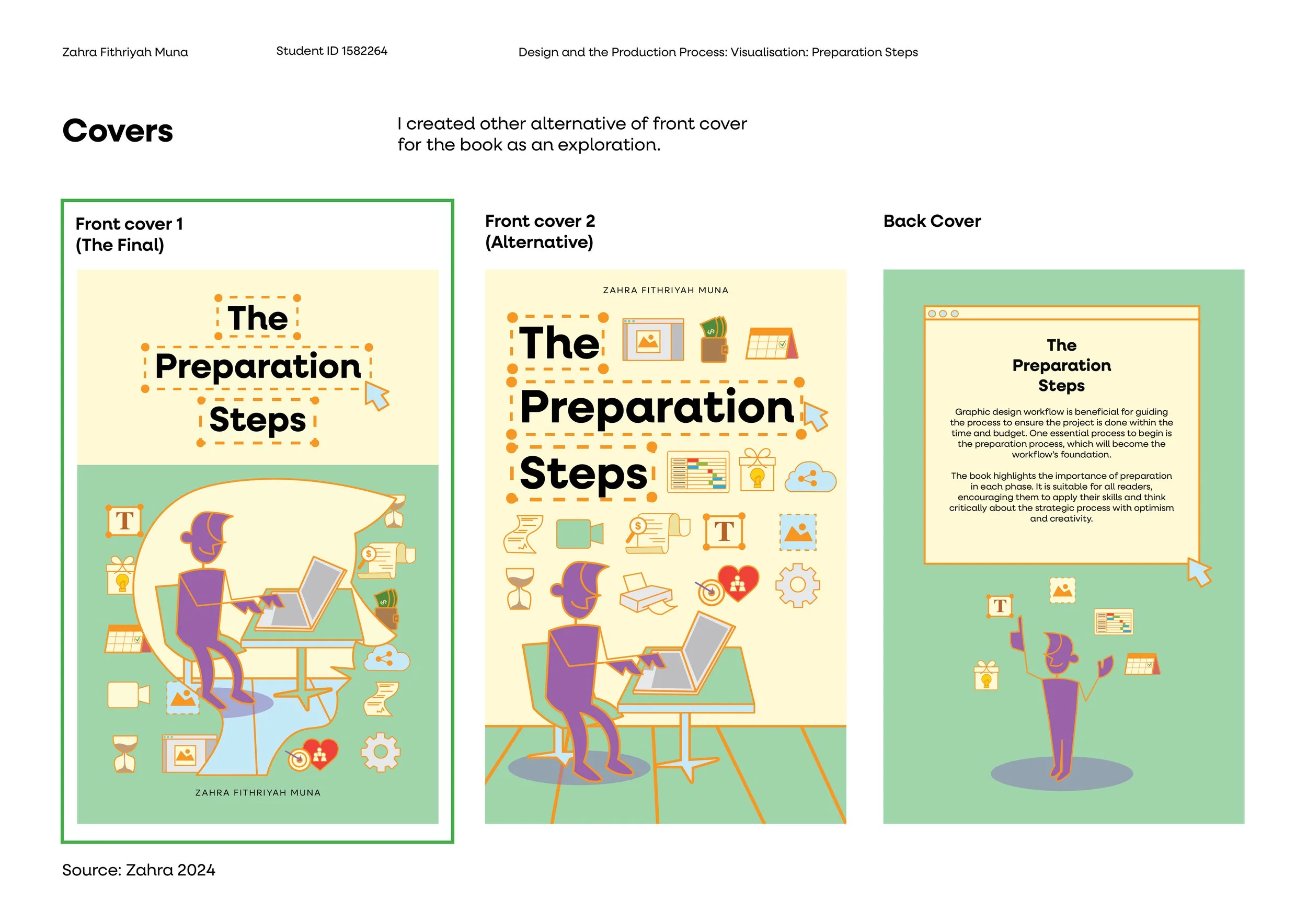 The book highlights the importance of preparation in each phase. It is suitable for all readers, encouraging them to apply their skills and think critically about the strategic process with optimism and creativity. The pocket book is portable, easy to carry, and suitable for designers’ way of life who like to find inspiration everywhere. Zahra designed the book and wrote the content by reading various articles to support it.